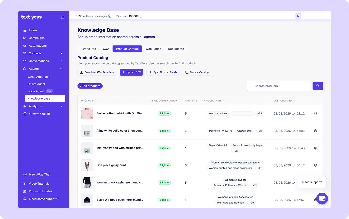 For retailers who want to turn conversations into revenue without scaling headcount, conversational commerce platforms provide the automation and insights to make this practical. TextYess offers AI agents that handle sales and support conversations 24/7, sync with your eCommerce stack, and track the metrics that matter for revenue.